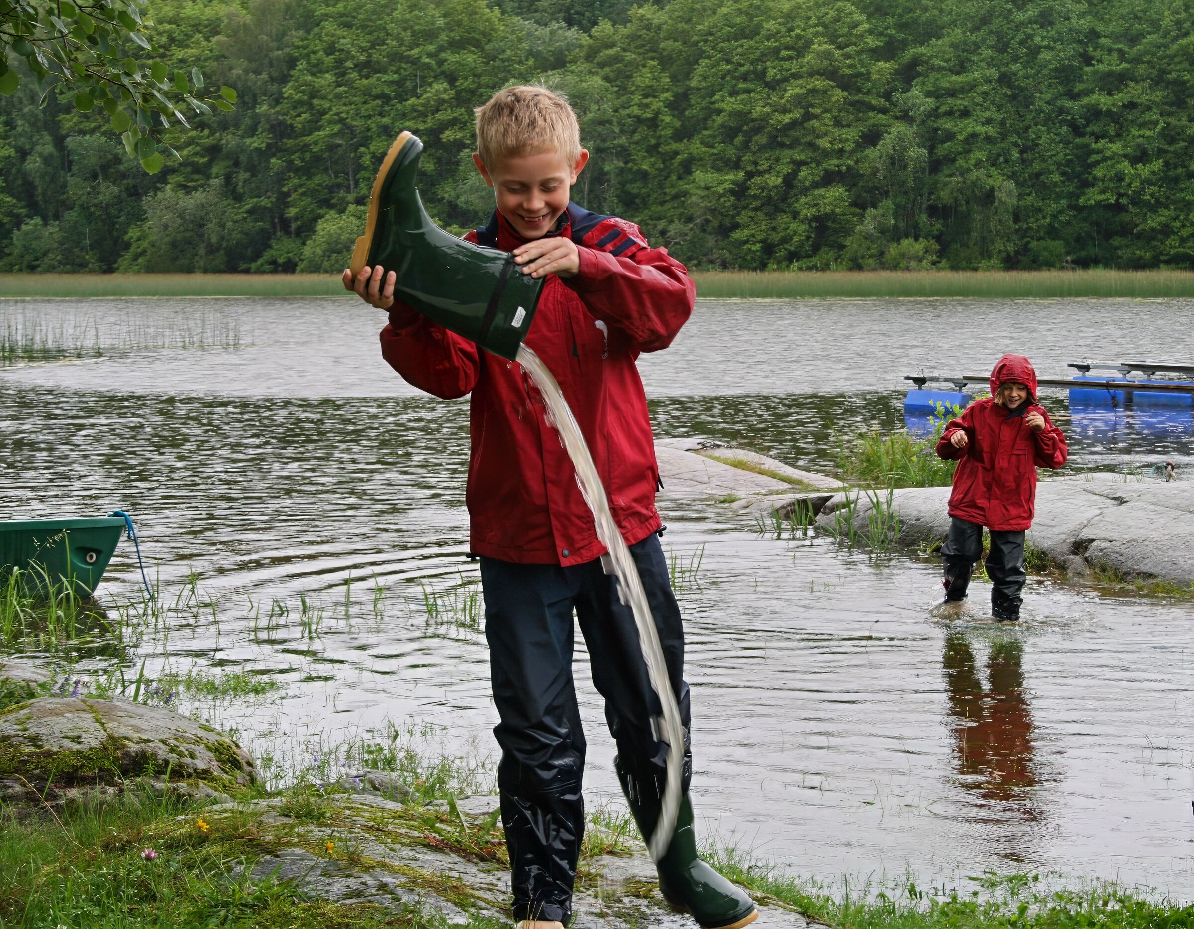 Skikkelig flott bilde. Man kan kjenne regnet og vinden godt og den røde sydvesten tar kaka! Her blåser det! Morsomt motiv med rød sydvest i det gyldne snitt... Tight og god komposisjon.