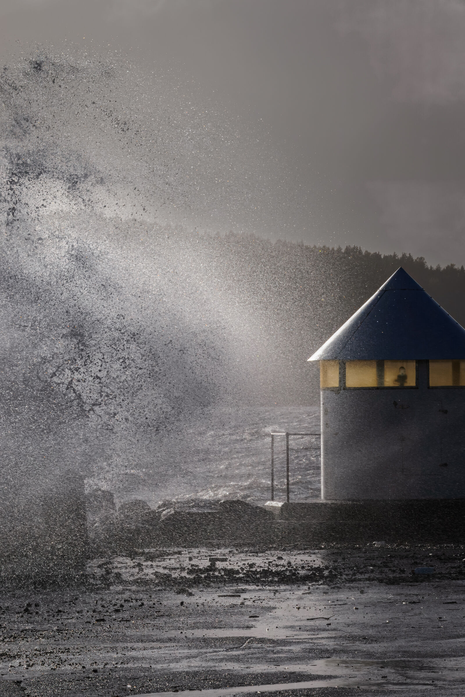 K Mann i vær - ja, så absolutt. Jeg tror nok kanskje jeg ville satt mannen ned på svaberget med ryggen mot oss. Slik det er nå tar han for mye fokus bort fra været. K Fint med menneske i tøff natur! (Kanskje en forsiktig (1/4) beskjæring inn fra venstre ville gjort det bedre?)